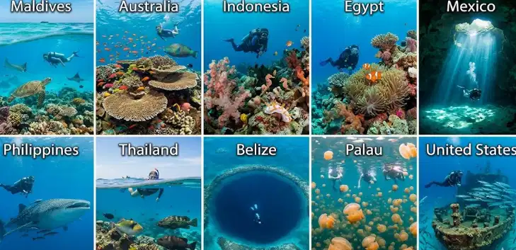These places give some of the best underwater fun in the world, with coral reefs, shipwrecks, and many sea animals. Each place lets people see the beautiful world under the ocean.