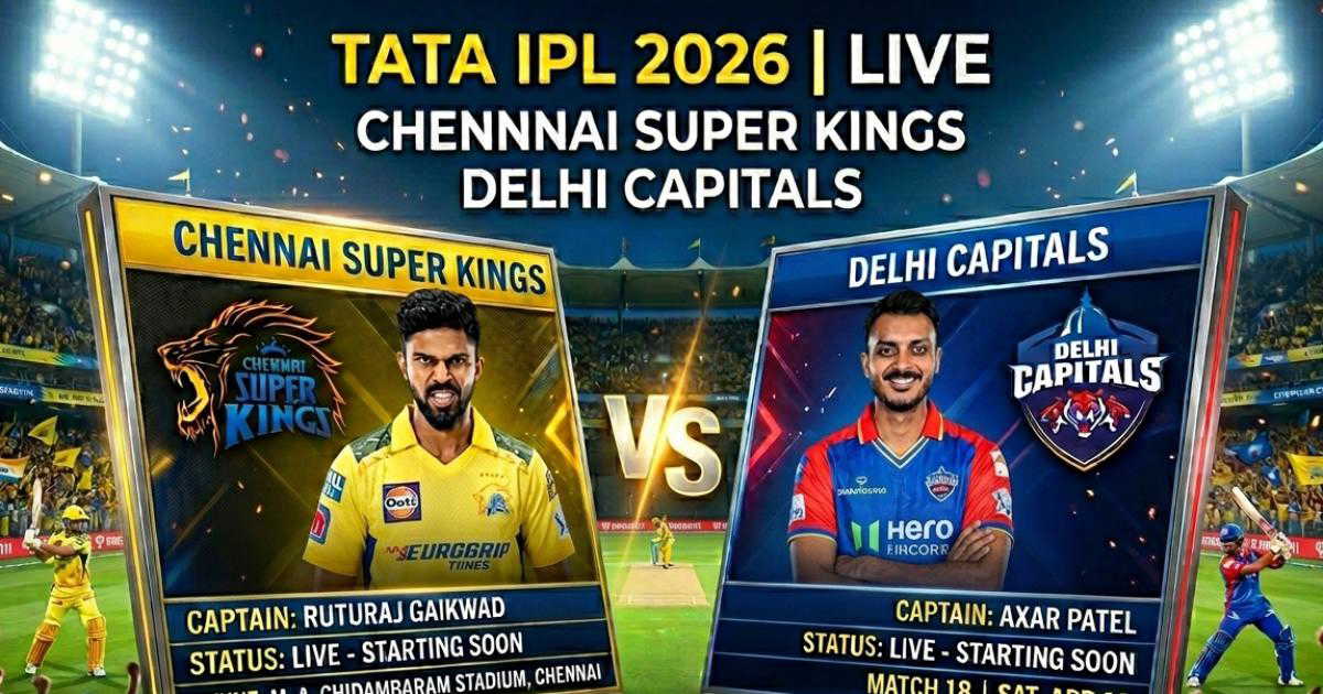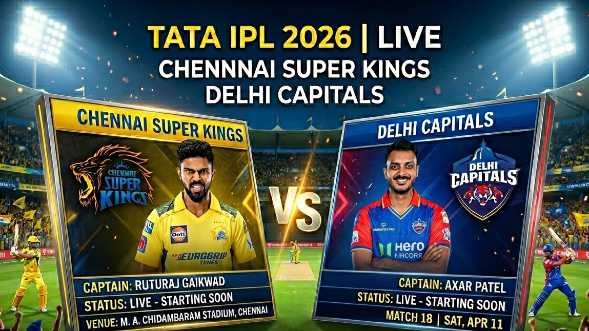 Chennai Super Kings registered a strong start, reaching 77/1 in 8.4 overs after Delhi Capitals elected to bowl first. Sanju Samson anchored the innings with a brisk 52 off 27 deliveries, displaying attacking intent through nine boundaries. Ruturaj Gaikwad scored 15 before being dismissed by Axar Patel, while Ayush Mhatre contributed a quick 9. The scoring rate stood at 8.88, underlining CSK’s positive approach in the early phase. Delhi’s bowling unit found it difficult to contain the flow of runs, with Axar Patel being the only wicket-taker. With key batters still to come, CSK appeared well-positioned.
