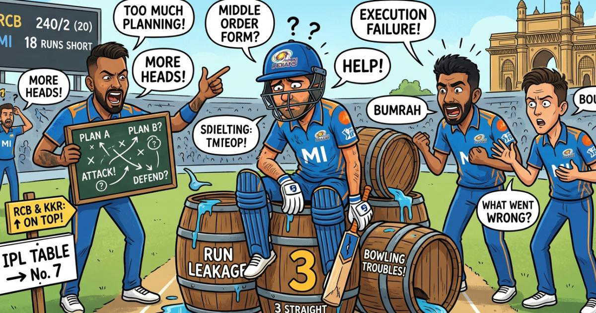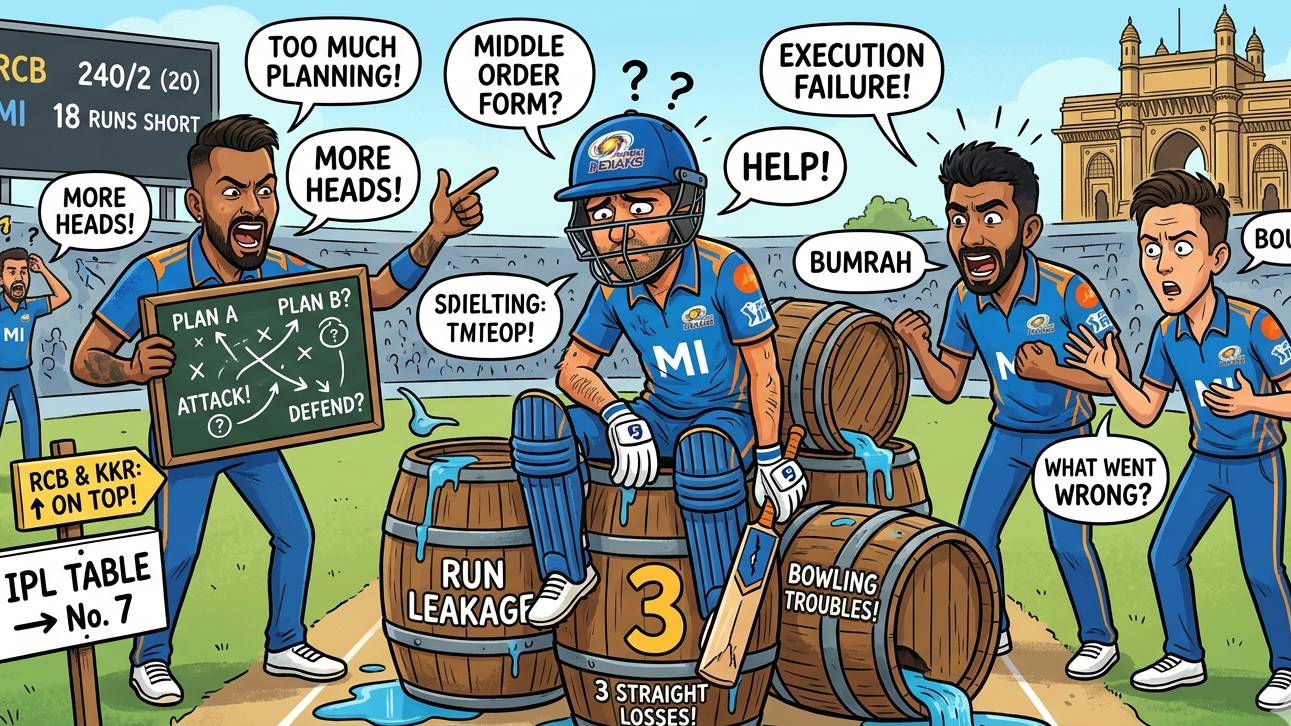 Mumbai Indians’ third straight loss highlights bowling inconsistency, tactical confusion, and middle-order struggles, exposing cracks despite a star-studded squad.