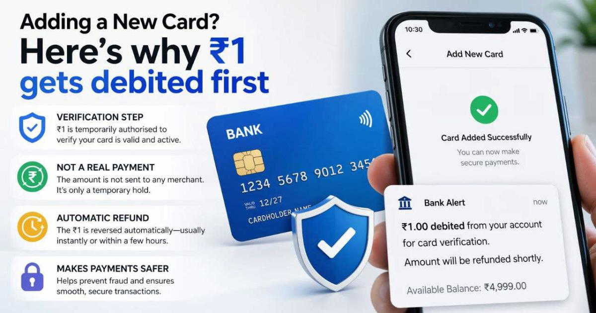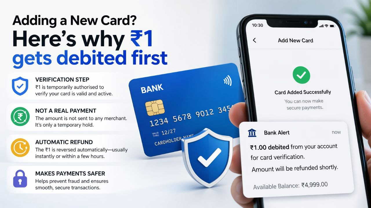 If you’ve ever added a debit or credit card to an app or website, you may have noticed a small deduction, usually ₹1, from your account. This often raises concerns, but the charge is not what it seems.
