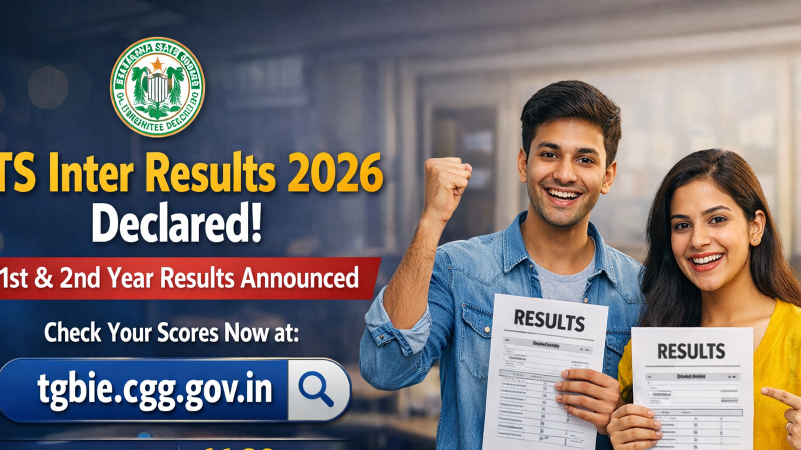 The Telangana State Board of Intermediate Education has announced the TS Inter Results 2026 for both first-year and second-year students. The results were declared at 11:00 AM from the board’s Hyderabad office. The announcement was made by K. Keshava Rao, Advisor to the Telangana Government, along with Yogita Rana, IAS, Secretary of the Education Department and Vice-Chairperson of the board.