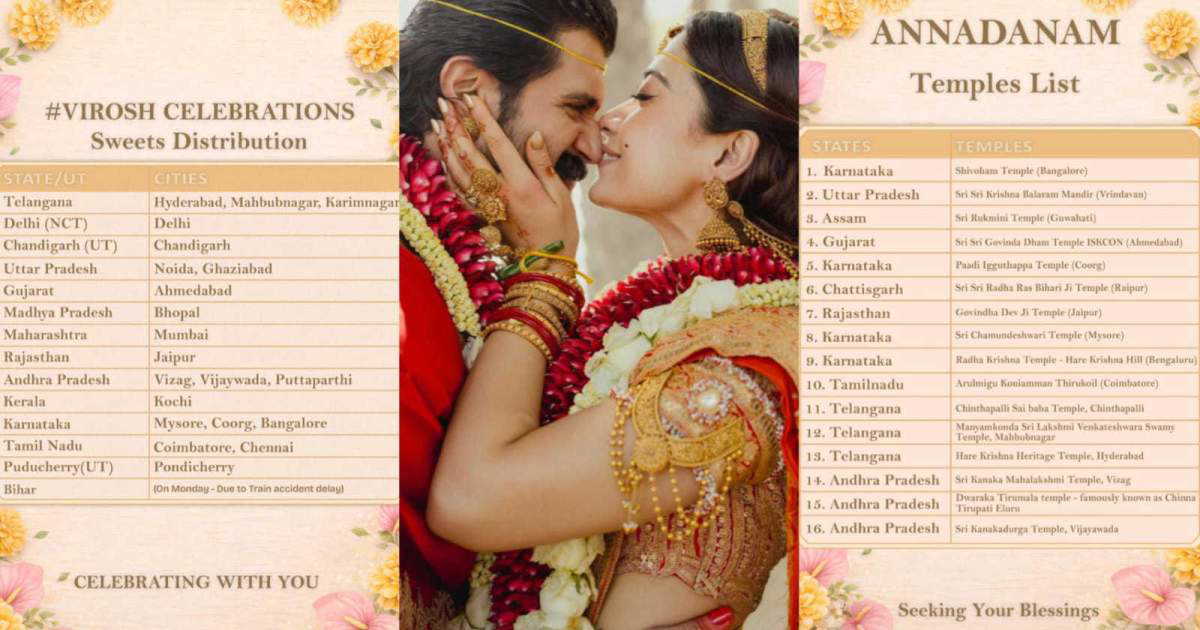 To mark their wedding celebrations, the couple announced that they will organise ‘annadanam’ in temples and distribute food and sweets across the country. They also revealed the details of cities where the distribution will be carried out.