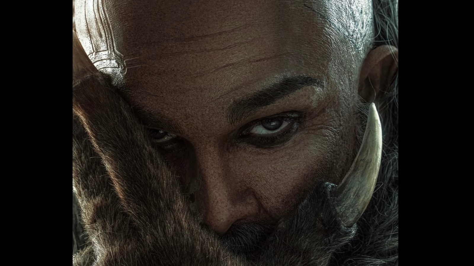 The poster offers an entirely contrasting appearance for Allu Arjun. In his new avatar, the actor is seen with a bald head, black eye makeup, and prominent marking on the forehead. He is also seen holding claw-like elements, hinting at a fierce, possibly primal character.