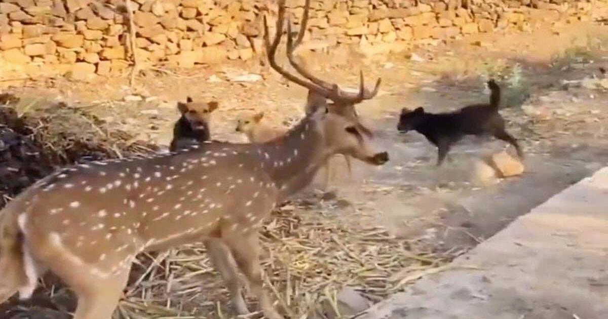 Bajna Forest Range,a frightened deer, driven out of its shrinking habitat, ran straight into a human settlement a pack of stray dogs pounced on it https://t.co/AeS31COKGE pic.twitter.com/tIBviB1CUs