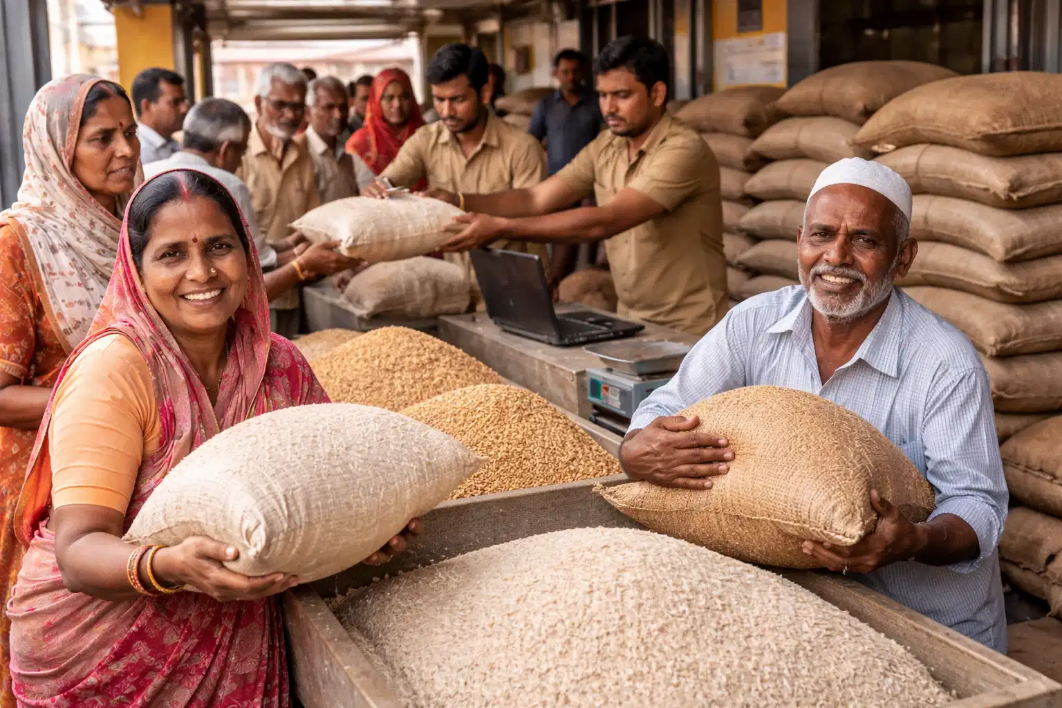 Under the Pradhan Mantri Garib Kalyan Anna Yojana (PM-GKAY), nearly 80 crore people across India receive free ration every month, with each beneficiary getting 5 kg of rice, wheat or a combination of both. To support this large-scale distribution, the government supplies around 33–34 lakh tonnes of rice and 15–16 lakh tonnes of wheat every month, taking the total to nearly 50 lakh tonnes of food grains. This extensive system plays a crucial role in ensuring food security for millions of poor and vulnerable households across the country.