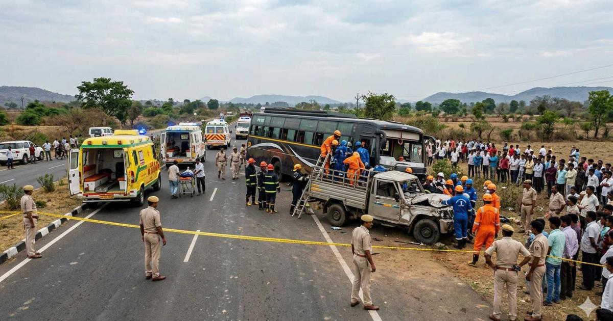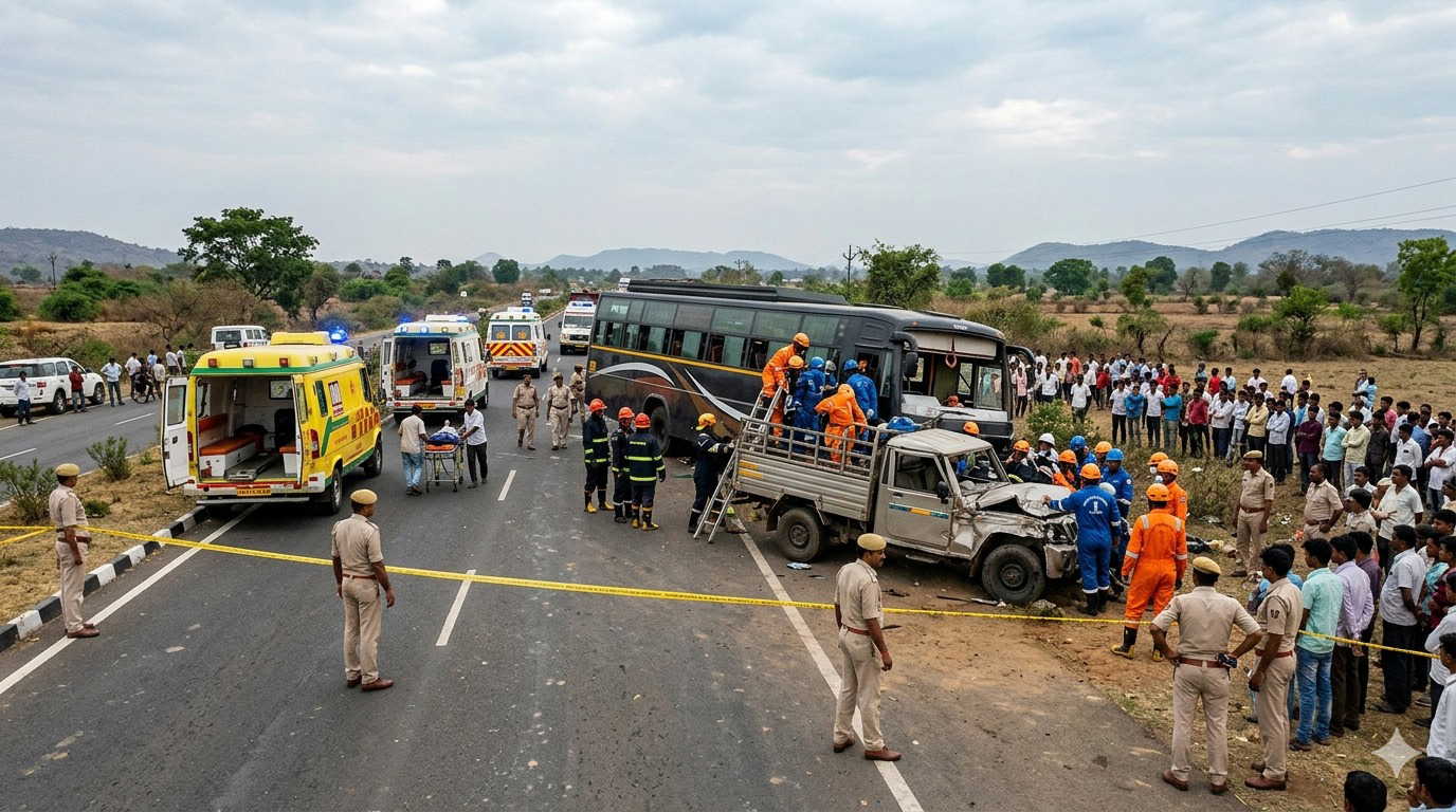 A bus carrying over 45 people collided with a mini truck near Umranala village in Chhindwara on March 26, 2026, around 7:15 p.m., killing 10 people and injuring around 35 others. The bus, which was returning from an event attended by Chief Minister Mohan Yadav, overturned following the crash. Those killed included three women, a child, and the drivers of both vehicles. The injured were taken to nearby hospitals.