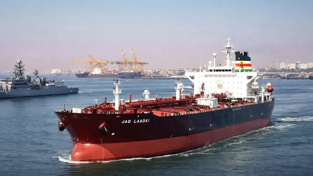 An Indian-flagged oil tanker, Jag Laadki, carrying about 80,800 metric tonnes of crude oil, arrived at Mundra Port in Gujarat on Wednesday after completing its voyage from the United Arab Emirates, officials said.