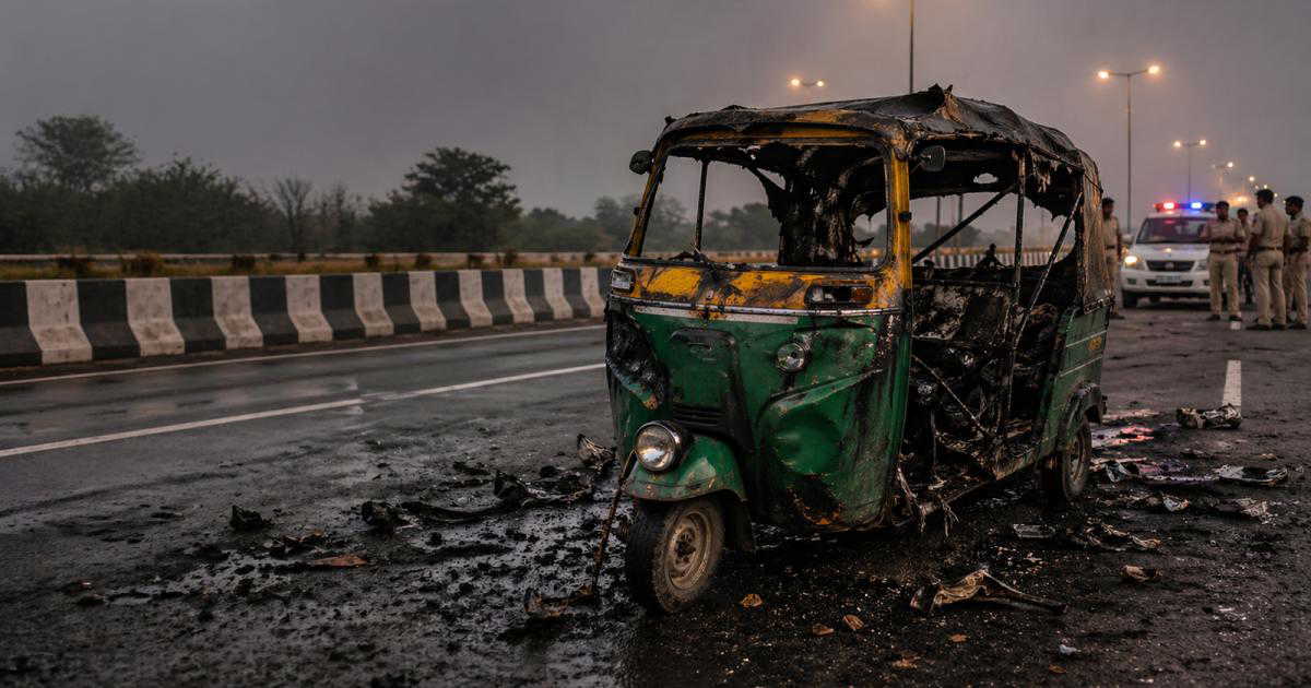 According to The Hindustan Times, the auto-rickshaw, registered in Gurugram, suddenly caught fire while in motion. Passersby alerted authorities and helped pull the driver out of the burning vehicle before emergency teams arrived.