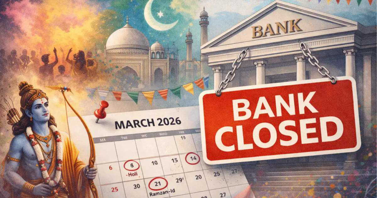 Banks in India will be closed for 18 days in March 2026, including weekends and regional holidays such as Holi, Eid-ul-Fitr, Gudi Padwa, and Ram Navami, according to the Reserve Bank of India holiday calendar for 2026.