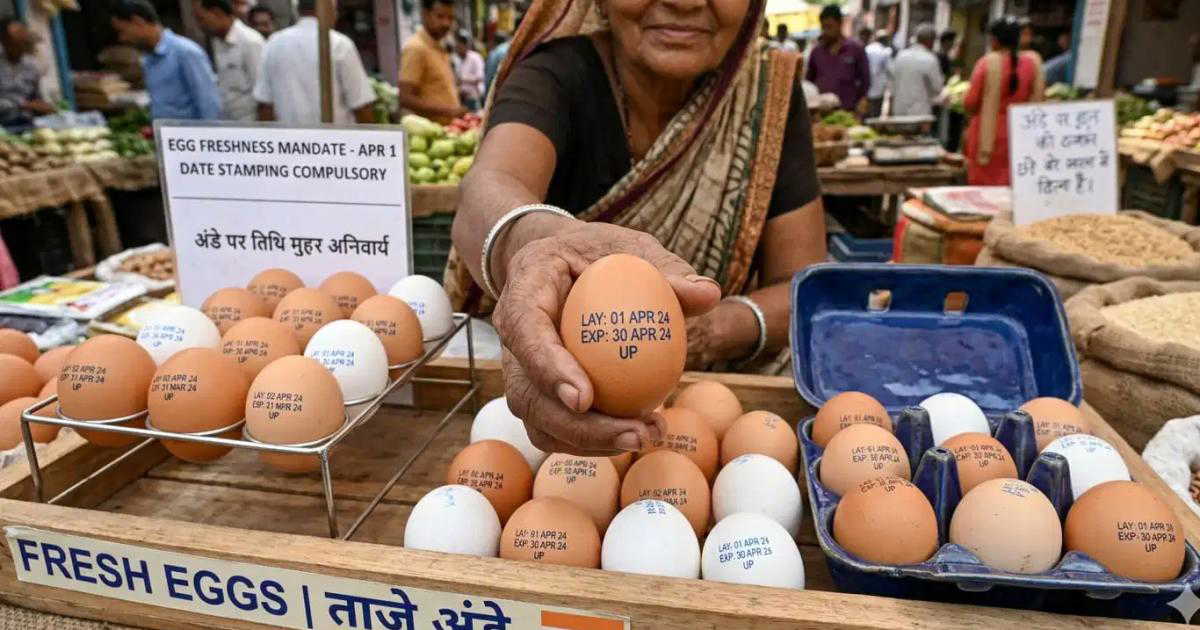 The Uttar Pradesh government has issued a new food safety directive. Egg producers across the state must now stamp each egg with its laying date and expiry date. This rule takes effect on April 1.