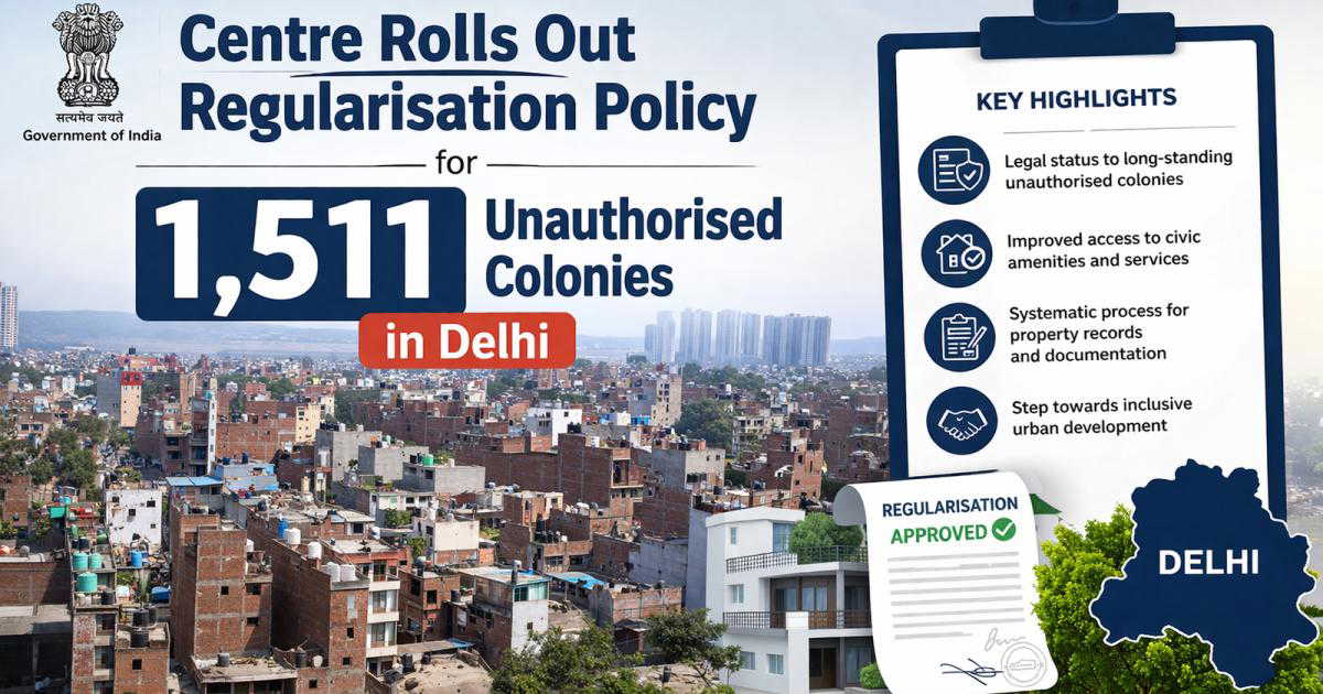 In a significant move aimed at addressing one of Delhi’s most persistent urban challenges, the Centre has announced a regularisation policy covering 1,511 unauthorised colonies. The initiative is expected to benefit lakhs of residents by granting them ownership rights and bringing these settlements into the formal urban framework. While the national capital has around 1,731 unauthorised colonies, those located in restricted zones such as forest and ridge areas have been excluded from the scheme’s purview.