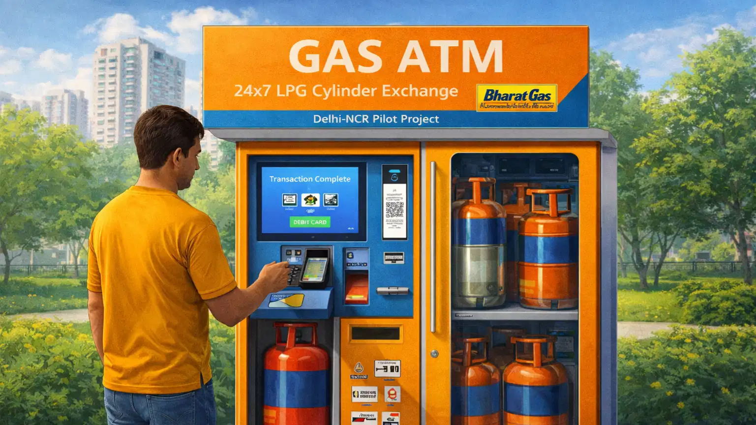 The ‘Gas ATM,’ which is automated, has been set up at Central Park Flower Valley as part of a pilot project by Bharat Gas for Delhi-NCR.
