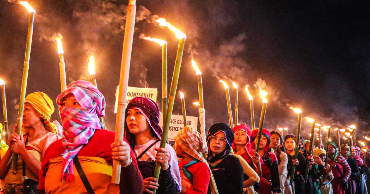 Tensions escalated further during a torch rally in Imphal’s Thangmeiband area, where clashes broke out between protestors and security forces. Six people were injured, including three CRPF personnel. Security forces attempted to stop protestors from marching towards Khwairamband Ima market, leading to confrontations in Thangmeiband, Sagolband, and Uripok.