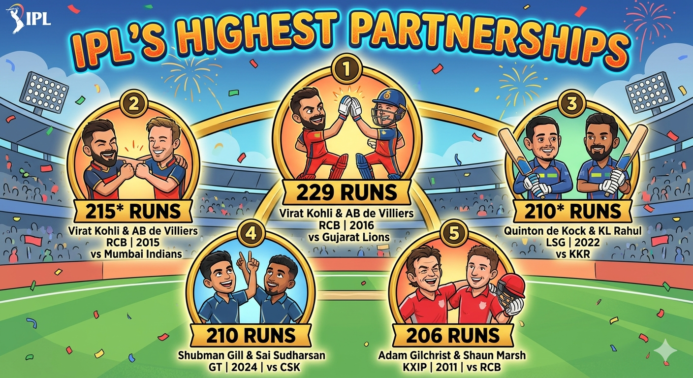 The first-ever 200-plus partnership in IPL history was set by Kings XI Punjab’s Adam Gilchrist and Shaun Marsh in 2011. They put on 206 runs against RCB at Dharamshala, with Gilchrist scoring a blistering century. For over a decade, this Australian masterclass stood as the ultimate benchmark for multi-wicket T20 stands.