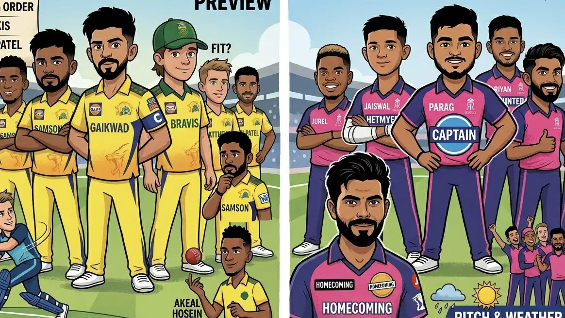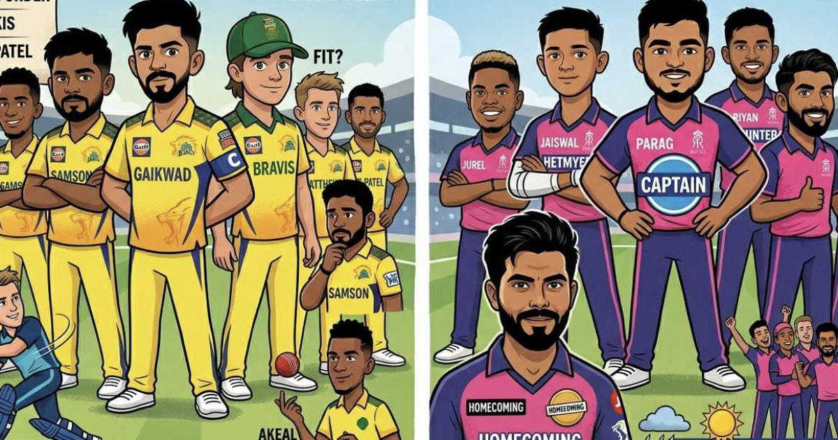 With the unavailability of CSK main man and middle order floater, the yellow army have to rely heavily on the new faces, previously CSK captain Ruturaj Gaikwad confirmed on captains day that Sanju and he will open for CSK now as they will take the field, with lack of experience in the middle order Rutu can come down the order, and Urvil Patel can fill the void of Bravis at number four, and Matthew Short can come in as finisher in place of Dhoni.