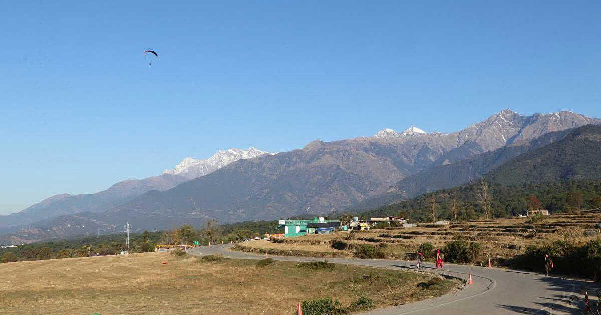 If you wish, you can also join this unique experience. There's a large flat area like a bugyal at the top of the mountain. For safety, a rubber-padded sheet is laid out, which is also called a launching pad. This is where paragliding takes place.