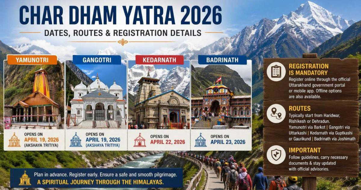 The Char Dham Yatra 2026 is set to begin soon, drawing thousands of devotees to the sacred Himalayan shrines of Yamunotri, Gangotri, Kedarnath and Badrinath in Uttarakhand. If you are planning the pilgrimage, here’s a simple guide covering dates, routes and how to register.