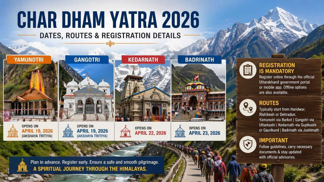 The Char Dham Yatra is one of the most important pilgrimages in India, offering a deeply spiritual experience amid the Himalayan landscape. With registrations open and dates announced, devotees can now begin planning their journey for 2026.