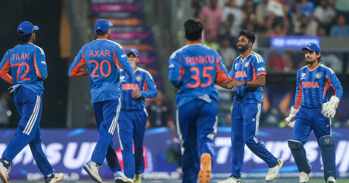Abhishek Sharma, Sanju Samson (w), Ishan Kishan, Suryakumar Yadav (c), Tilak Varma, Hardik Pandya, Shivam Dube, Axar Patel, Arshdeep Singh, Varun Chakaravarthy, Jasprit Bumrah, Kuldeep Yadav, Mohammed Siraj, Rinku Singh, Washington Sundar.