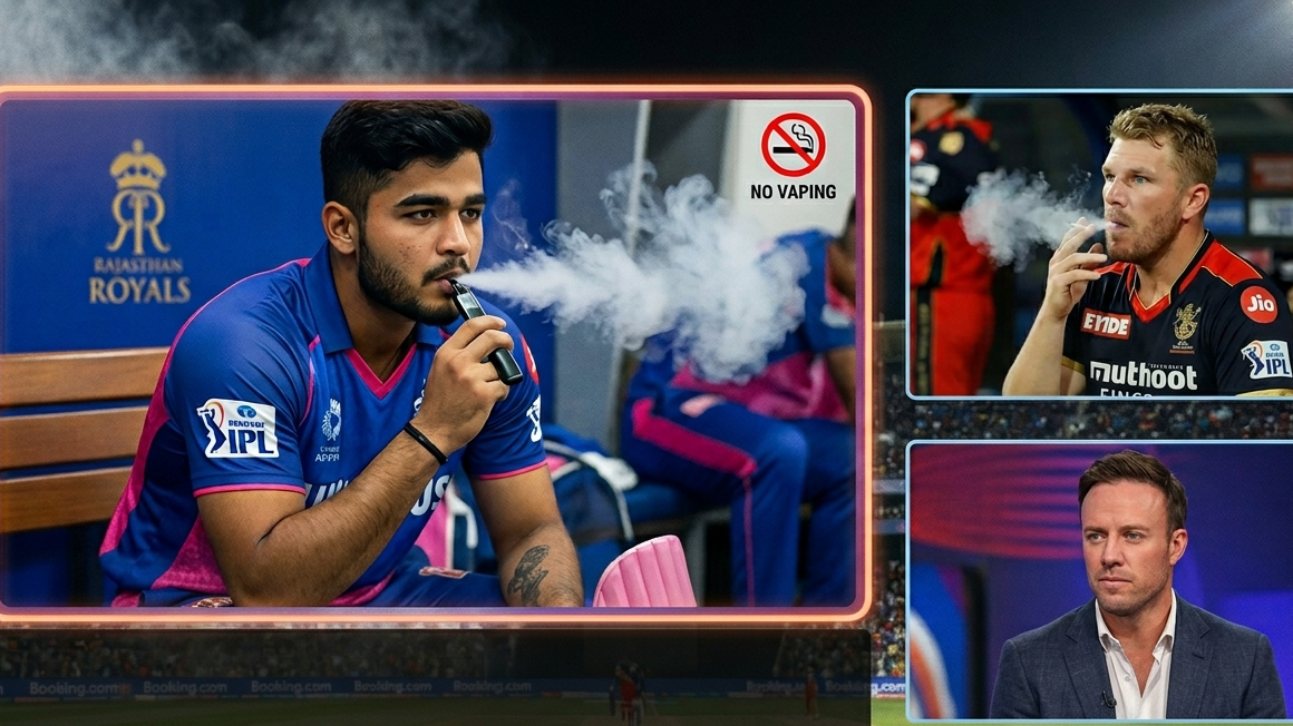 The IPL 2026 season has triggered an unexpected controversy, with visuals of cricketers vaping surfacing during live broadcasts. The issue gained traction after Riyan Parag was allegedly seen using a vape inside the dressing room during a Rajasthan Royals clash, prompting widespread debate around professionalism, legality and player conduct. With cameras now capturing even off-field moments, such incidents have quickly become viral talking points. Notably, this is not the first time cricketers have faced scrutiny over similar behaviour, as past instances have resurfaced alongside the latest controversy.