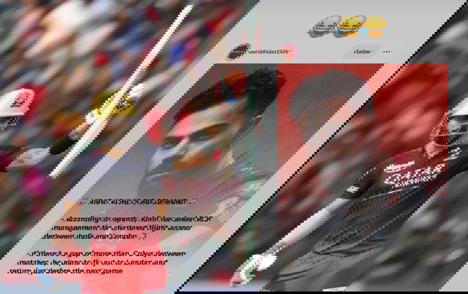 “Virat Kohli's big demands: According to reports, Kohli had asked RCB management for chartered flight access between India and London. If there's a gap of more than three days between matches, he plans to fly out to London and return just before the next game,” the post read.