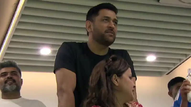 India are now in their fourth T20 World Cup final. On Sunday, they will face New Zealand. In the semi-final, India beat England by seven runs in a thrilling match in Mumbai on Thursday. Jacob Bethell scored a brilliant 105 for England. But Sanju Samson’s amazing 89 helped India set a huge total of 253-7. England fell short, finishing at 246-7, just missing what would have been a record chase. During the later overs, when England was putting pressure, his wife Sakshi got excited thinking India had taken a wicket. Dhoni just smiled and told her, “Baith Jao (Sit down).” The video of MS Dhoni calmly gesturing to his excited wife Sakshi Dhoni has gone viral.