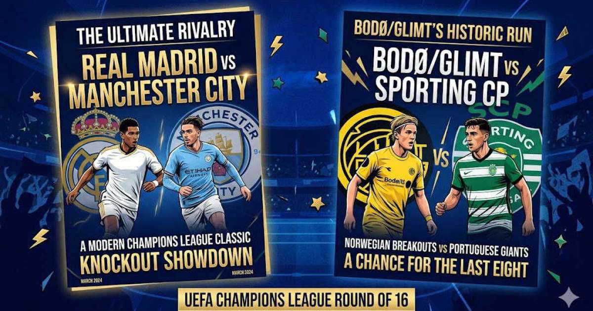 The knockout bracket for the UEFA Champions League has thrown up compelling storylines, highlighted by yet another meeting between Real Madrid and Manchester City. Meanwhile, Norwegian champions Bodø/Glimt will take on Portuguese giants Sporting CP in a significant tie for the Scandinavian side. The two-legged Round of 16 fixtures are scheduled across March, with winners progressing to the quarter-finals.