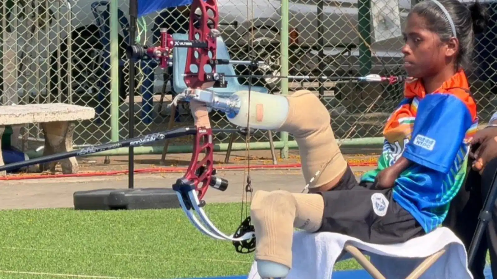 Unlike many para archers, Payal developed a distinct shooting method suited to her physical condition. She uses a custom prosthetic setup to stabilise the bow while drawing it with the support of her shoulder and releasing arrows using her mouth through a trigger mechanism. The technique, built through consistent practice, has become central to her performance.
