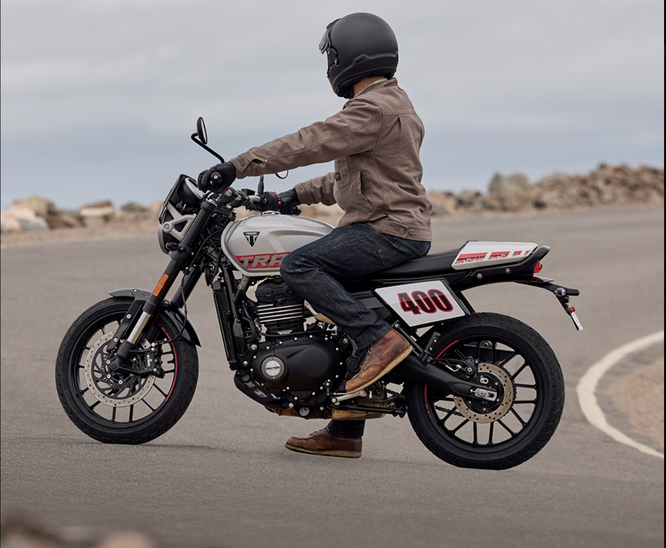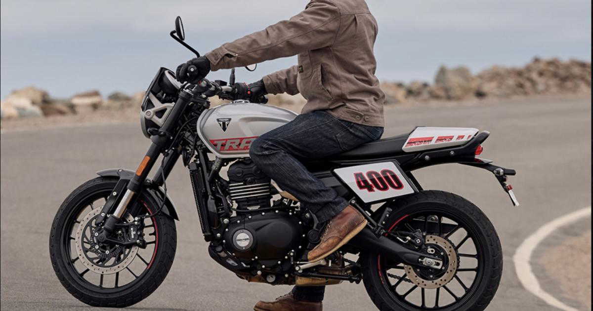 Triumph Motorcycles has expanded its 400 range with the Tracker 400, bringing a fresh design style to its entry-level lineup. The motorcycle is inspired by flat track bikes and gets a clean and minimal look. It features a round LED headlamp with a small visor, a wide and low handlebar, and a slim tail section that gives it a purposeful stance. The design also includes a number board-style side panel and a compact fuel tank. Some parts are shared with other Triumph models. The subframe comes from the Triumph Thruxton 400, while the twin-barrel exhaust is taken from the Triumph Scrambler 400.