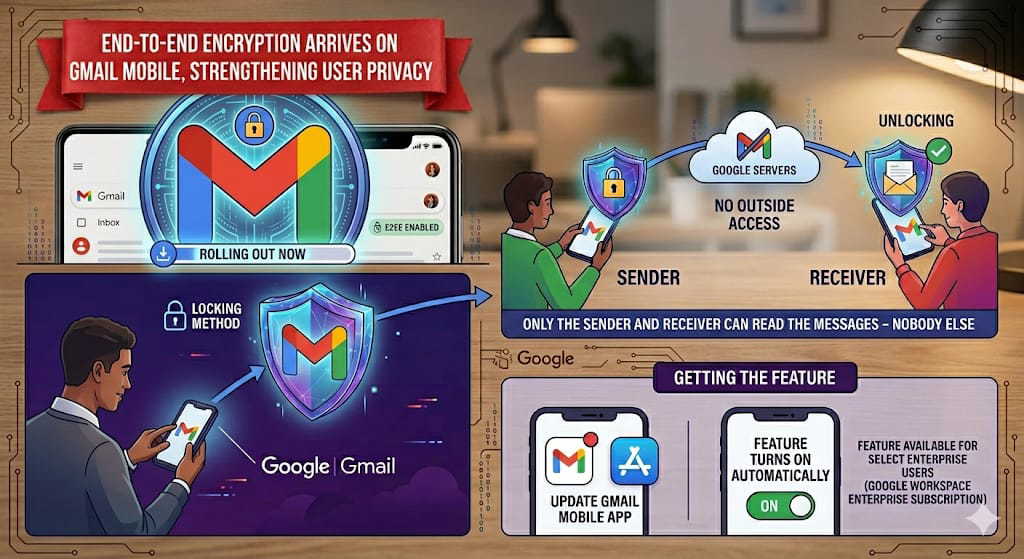 Google has brought a major privacy upgrade to Gmail. The company has confirmed that end-to-end encryption (E2EE) is now rolling out to Gmail users on both Android and iOS devices.