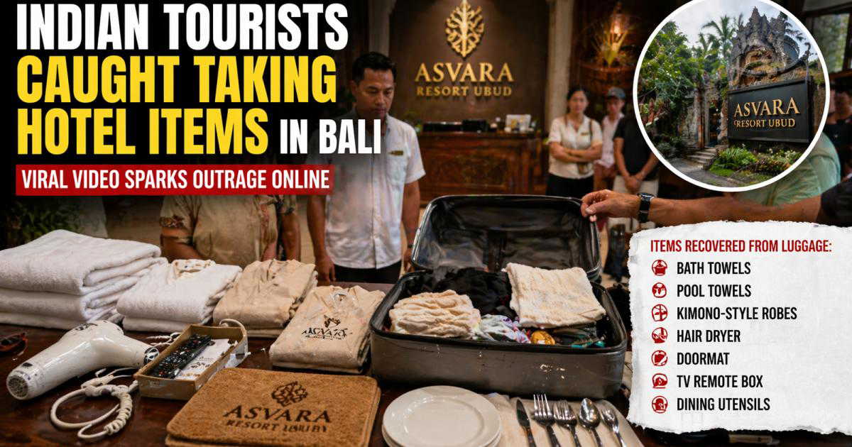 A video from a luxury resort in Bali has gone viral after a group of Indian tourists were allegedly caught taking hotel property while checking out. The incident, which took place on April 19, 2026, has sparked widespread attention and debate on social media over tourist behaviour abroad.