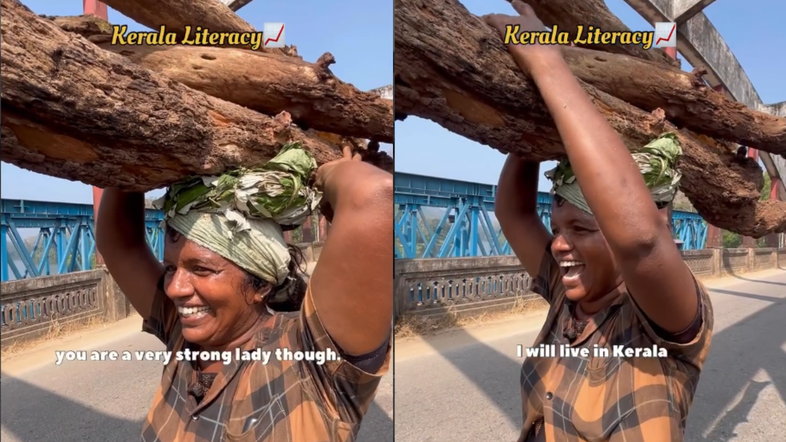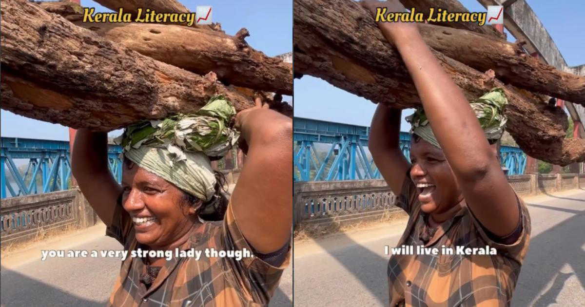 A video of a hardworking woman from Kerala is going viral online. She was seen carrying heavy wood while speaking confidently in English. Her strength, smile, and simple words have deeply touched viewers.