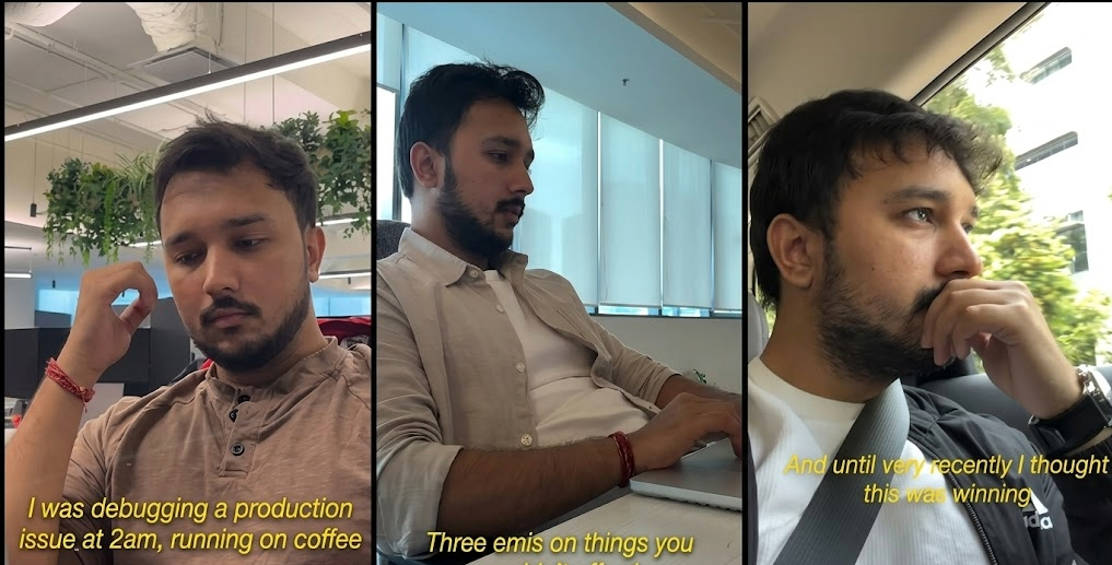 Aman pointed out how modern work culture romanticises struggle. “Humne suffering ko kitna aesthetic bana diya hai (We have made suffering so aesthetic). Bad sleep schedule, ‘Oh, I’m just built different.’ Three EMIs on things you couldn’t afford, ‘Bhai, that’s just adulting.’ Skipping lunch because the deployment is breaking production. The grind never stops because you never let it stop.”