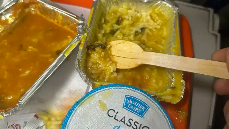 Found an insect in Vande Bharat train food (Ahmedabad ’ Mumbai). Atleast 2 such cases in my coach, everyone stopped eating after that.