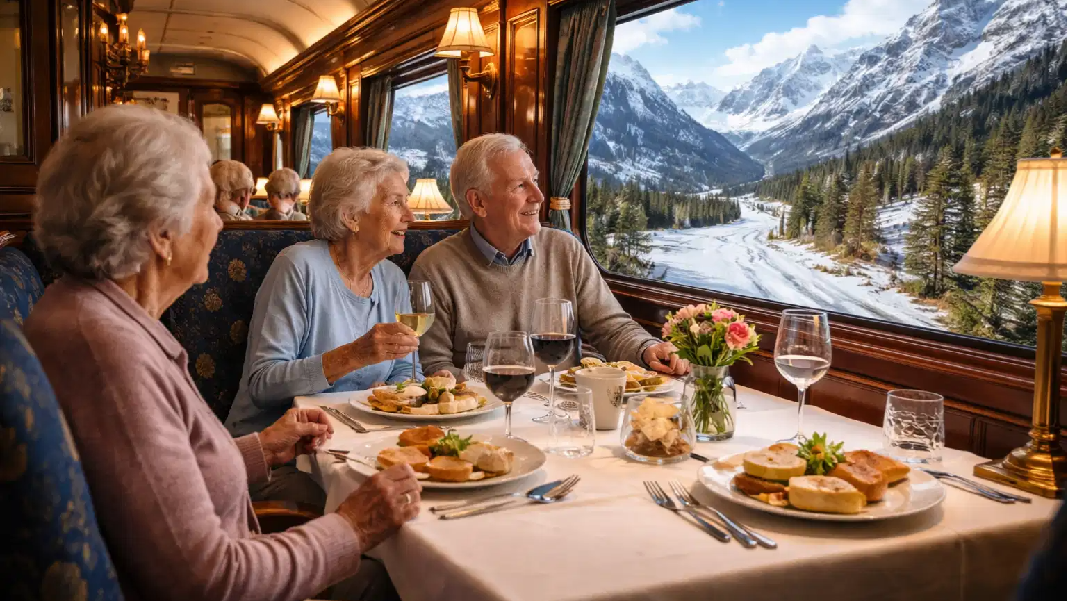 The St Vincent's Express sits inside St Vincent's Care in Toowoomba, Australia. It was put together to look like a carriage from a luxury dining train. Screens replace windows, surround sound fills the air, and virtual reality takes residents across 10 countries without anyone leaving their seat.