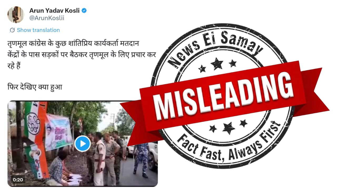 A viral video claiming to show police slapping and lathi-charging Trinamool Congress (TMC) workers during campaigning on polling day in West Bengal is misleading, a fact-check has found. The clip is being circulated on social media amid the ongoing Assembly elections, where the Model Code of Conduct (MCC) is in force and campaigning is prohibited after voting begins.