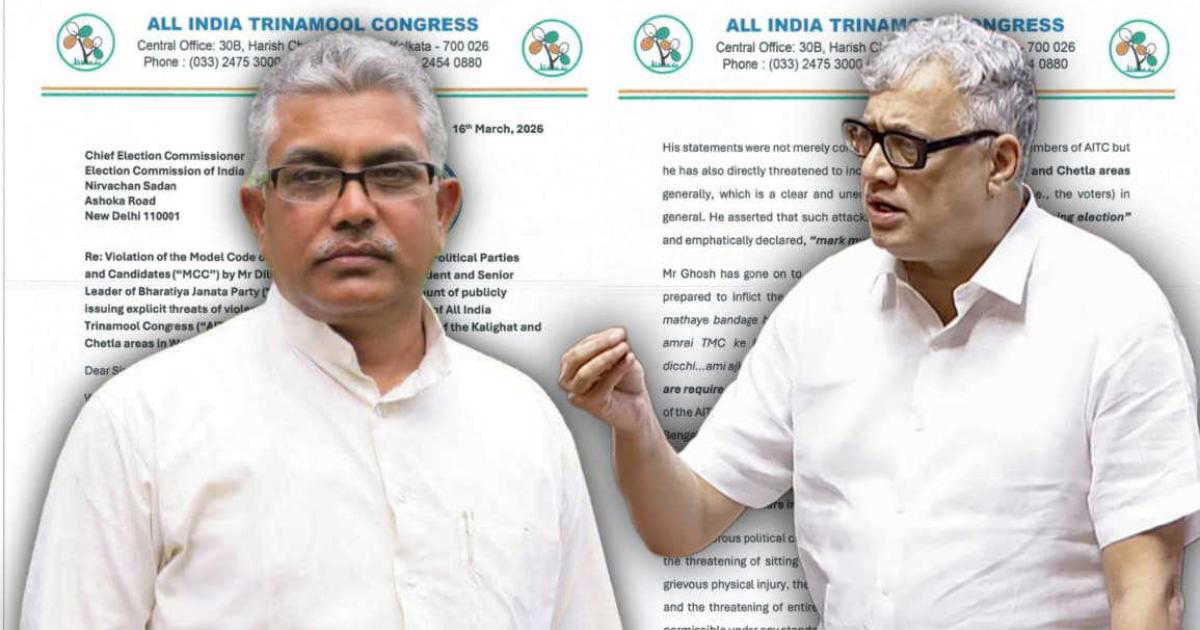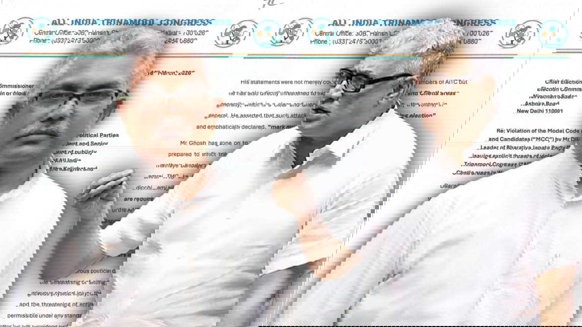 The All India Trinamool Congress (AITC) has approached the Election Commission of India (ECI), alleging serious violations of the Model Code of Conduct (MCC) by Bharatiya Janata Party (BJP) leader Dilip Ghosh. The complaint, dated March 16, 2026, flags what the party has described as "explicit threats of violence" and intimidation directed at political leaders, workers and the general public.