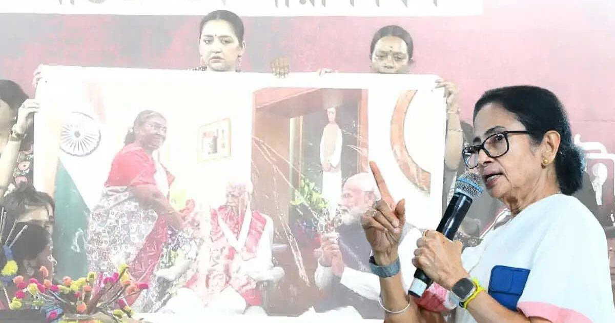 In the image, Prime Minister Modi was seen seated beside Advani during the award presentation, while the President was standing. CM Banerjee questioned why the President had not been honoured by standing up at the time.