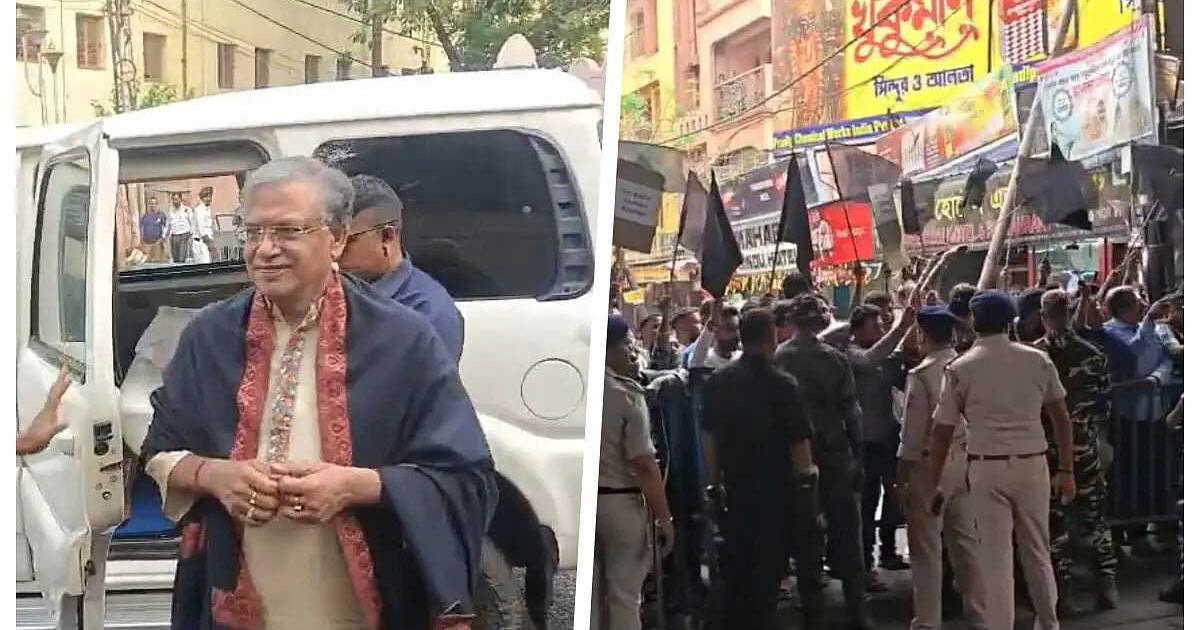 According to local sources, some Trinamool Congress workers and supporters had been waiting near the temple area since morning with black flags. They stood not far from the main gate of the Dakshineswar temple.