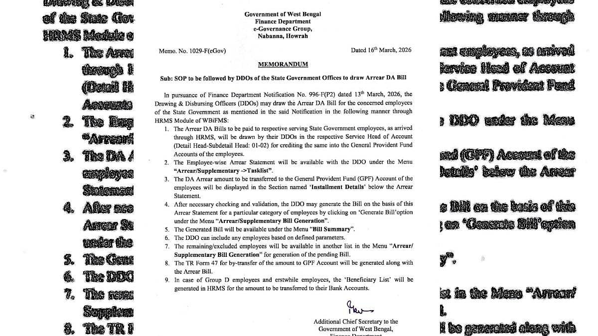 Following the Supreme Court's directive, Nabanna has now begun the process of releasing dearness allowance (DA). Sources report that the Finance Department has already generated 'arrear statements' for many cases. This means the money will now go to the treasury or Pay and Accounts Office (PAO).