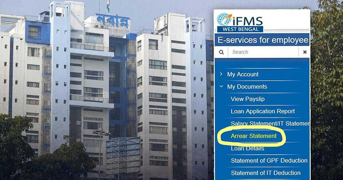 Go to the portal https://www.wbifms.gov.in/ and select the 'Arrear Statement' option from the 'My Document' option. There you can see the amount of your pending DA.