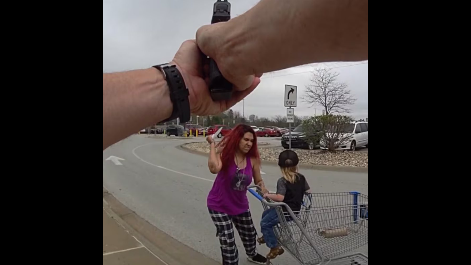 Responding officers located Guzman outside, standing near the cart with the child still inside. Authorities said she continued making threats and ignored repeated commands to drop the weapon.