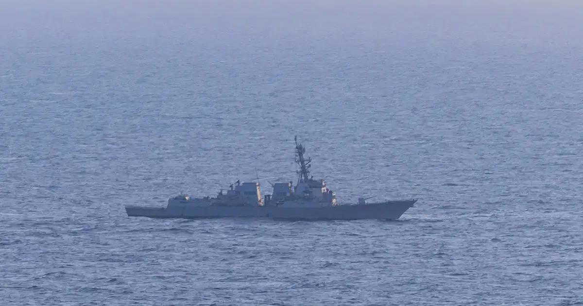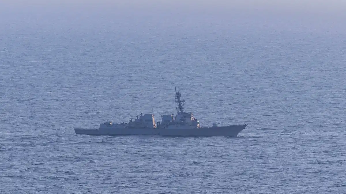 US naval vessels continue to maintain a visible presence in the Gulf of Oman, reinforcing the blockade and monitoring maritime movement in the region.