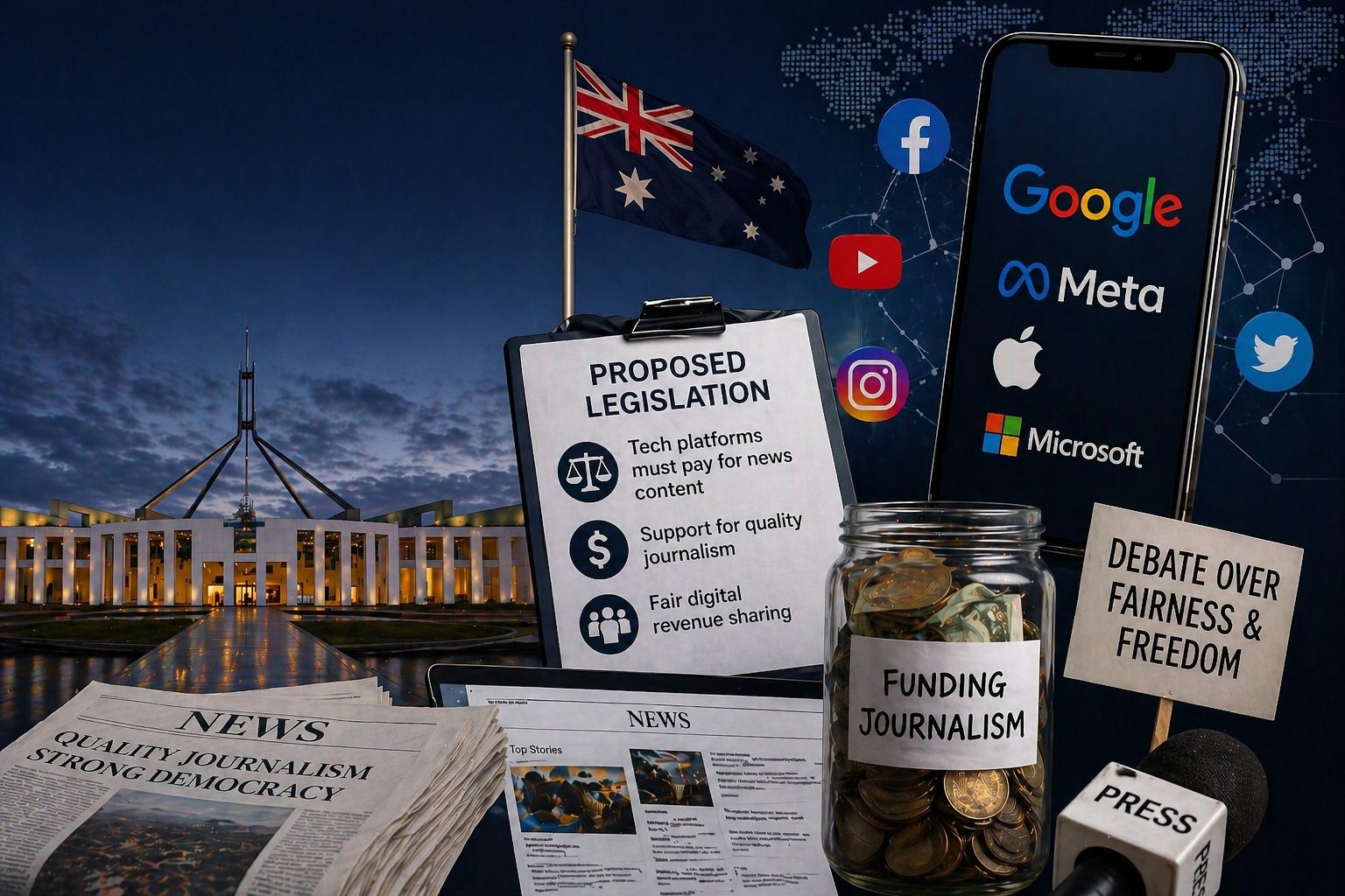 Australia proposes tax on Meta, Google and TikTok to fund journalism, sparking fresh debate with Big Tech.