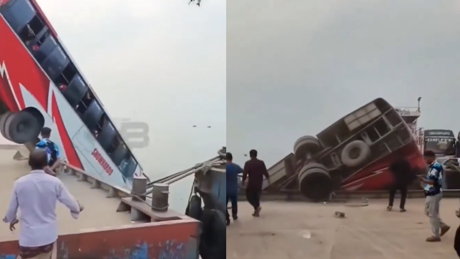 According to reports, the vehicle lost control while trying to get onto a ferry and fell into the river within seconds. A video circulating on social media shows the bus nosediving into the water as bystanders scream and rush to help.