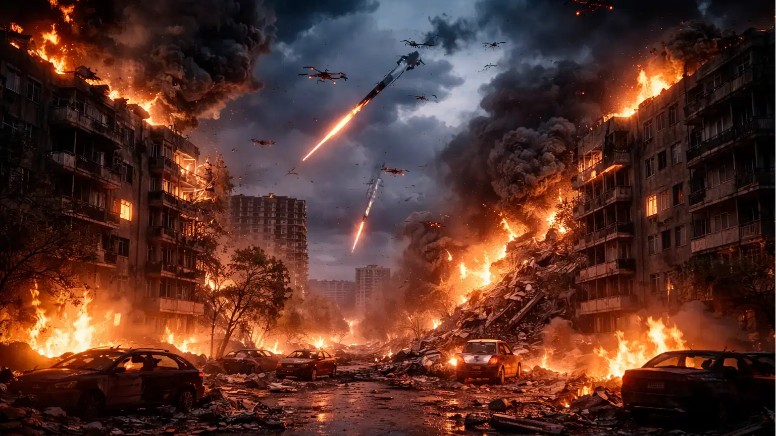"A drone… literally flew into an 18-storey apartment block," he said, describing the scale of destruction.