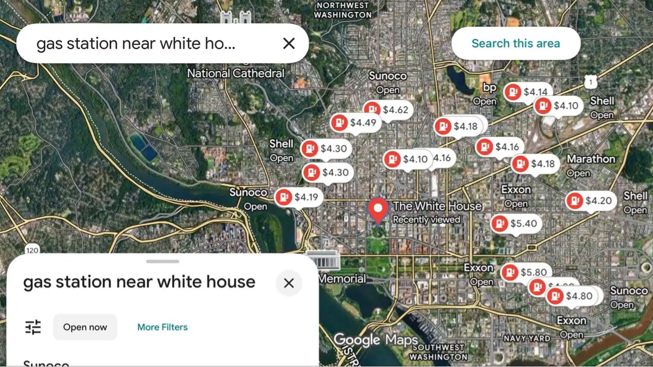He also shared an equation — "ΔO_BSOH>0 ⇒ f(f(O))>f(O)" alongside a screenshot of fuel prices near the White House, suggesting that the economic impact of a blockade could intensify over time.